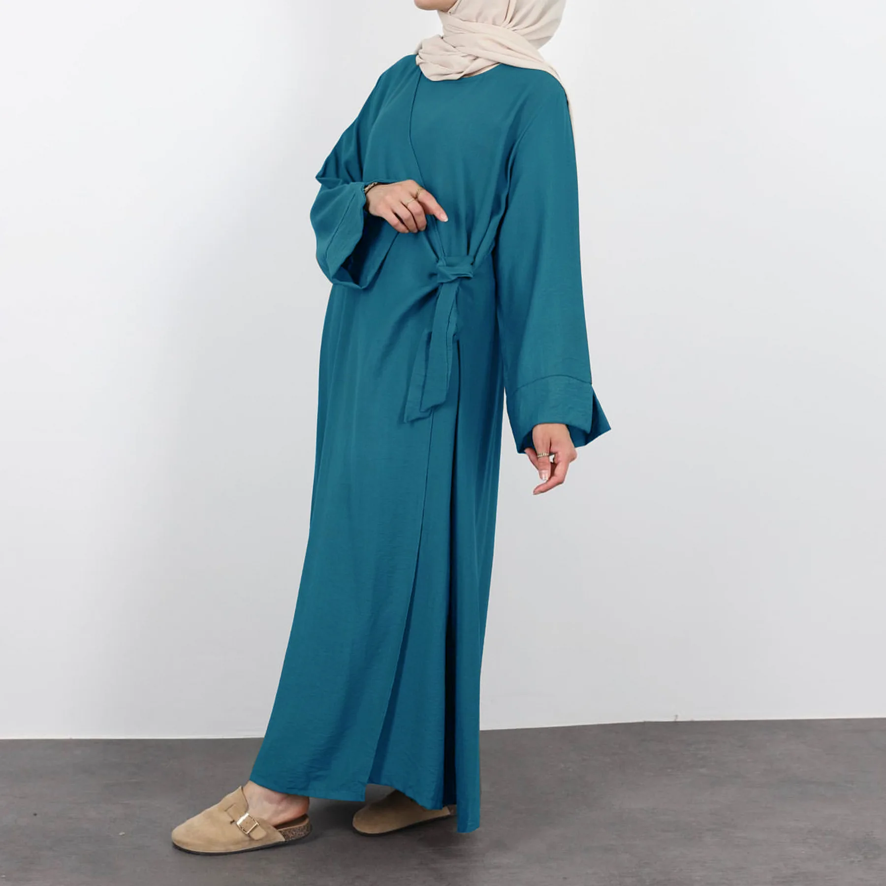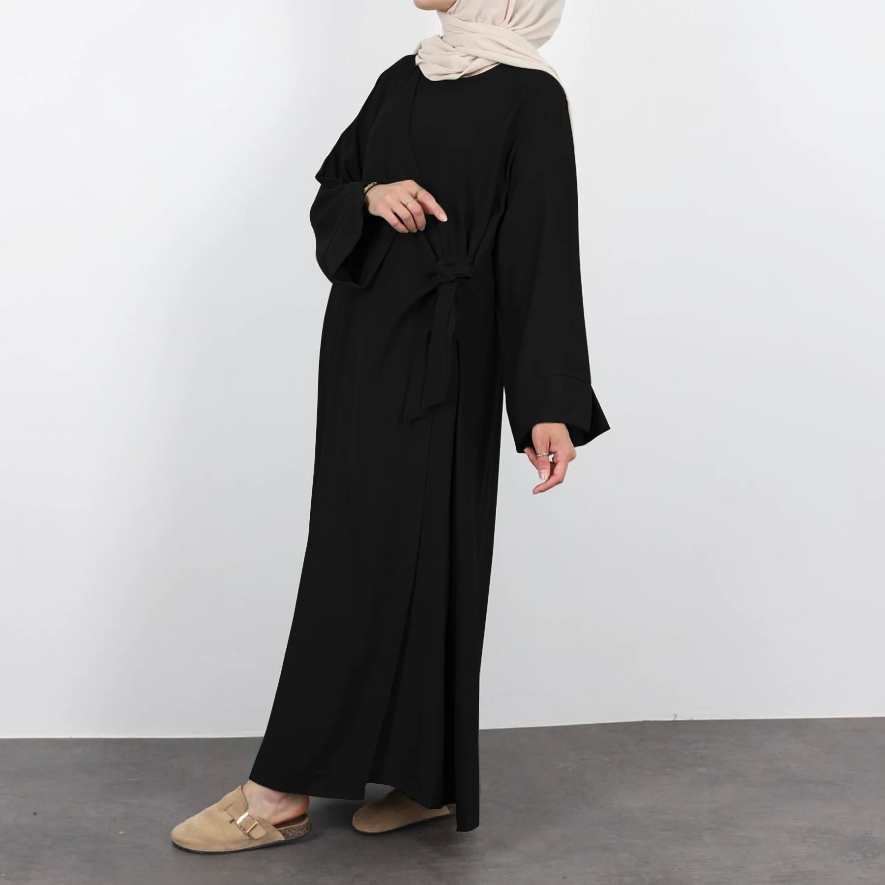 Women Fashion Muslim Maxi Dress Turkey Kaftan Dubai Abaya Saudi Arabic Cinkle Bandage Robe Eid Ramadan Islam Jalabiya Vestidos
